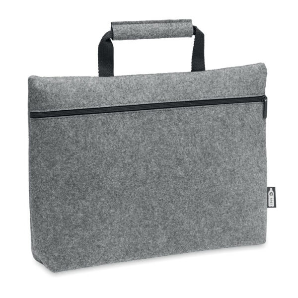 RPET felt 15 inch zippered laptop bag with zippered main compartment and inner pocket.