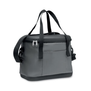 Cooler bag for 6 1,5l bottles in 210 polyester. With non woven white trimmings. 80gr/m². Isolation material: aluminium foil. Capacity 12,5L.