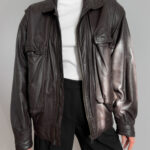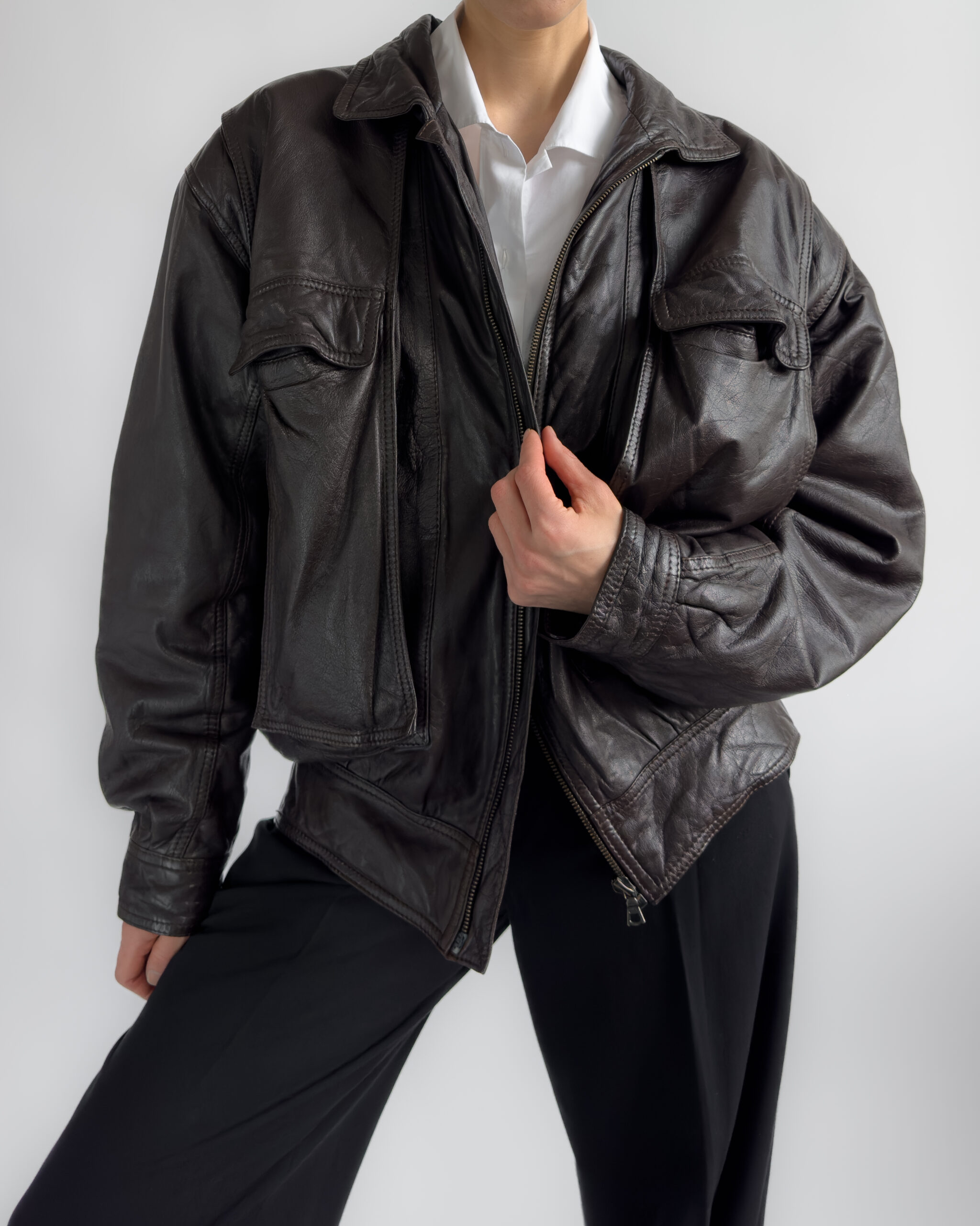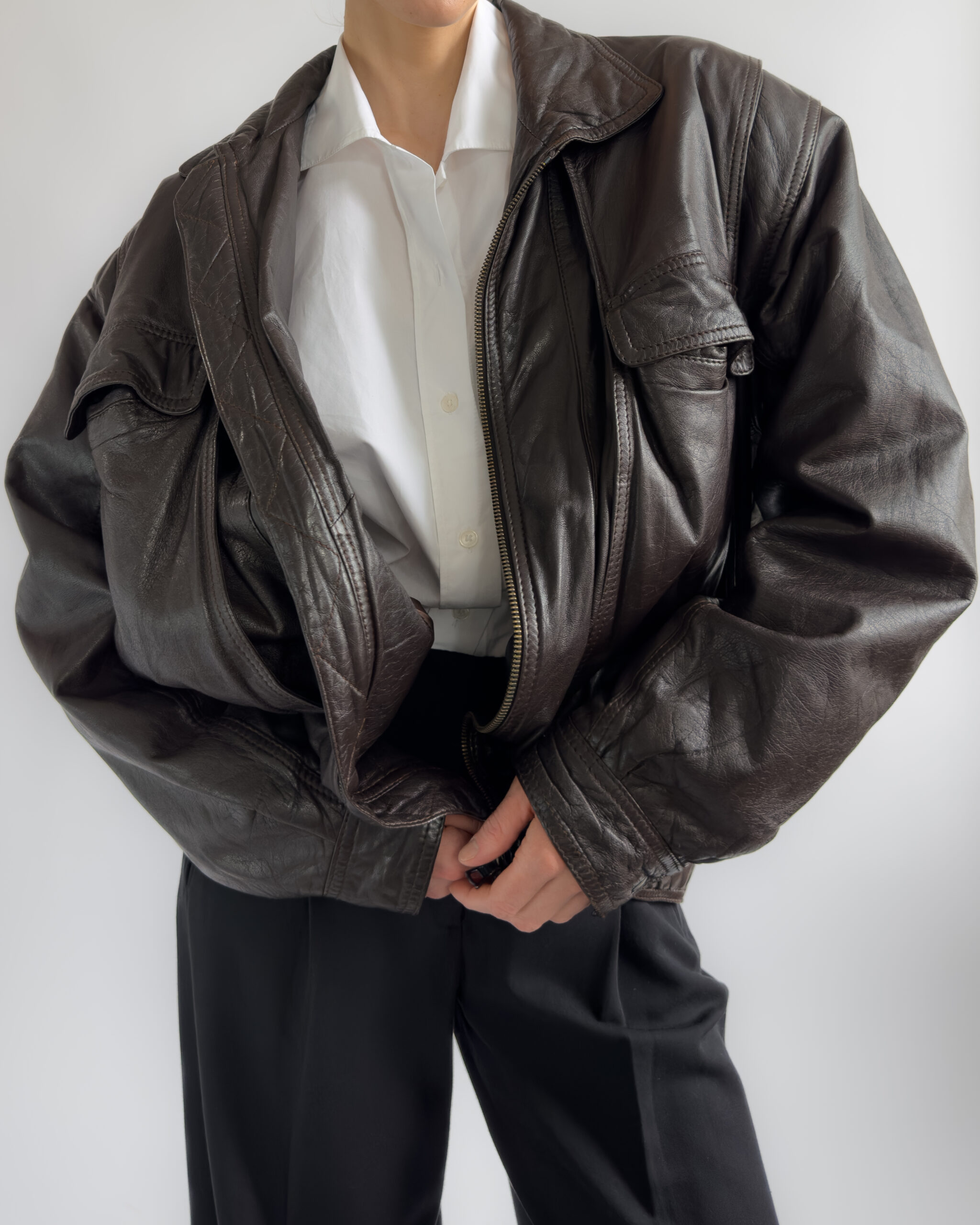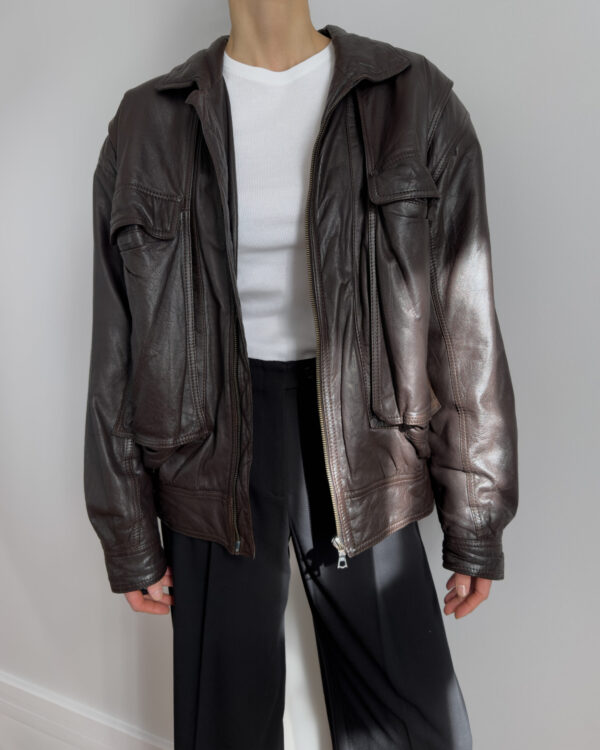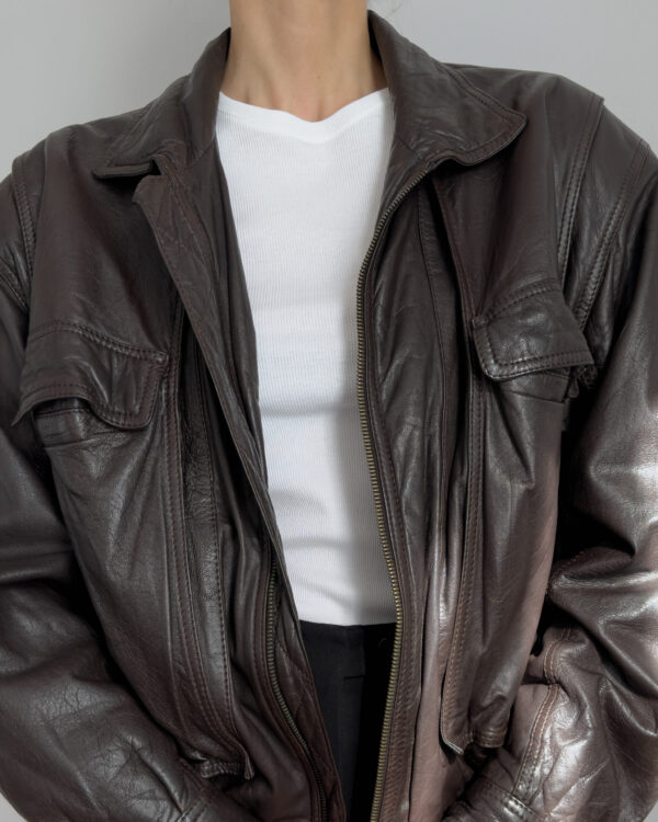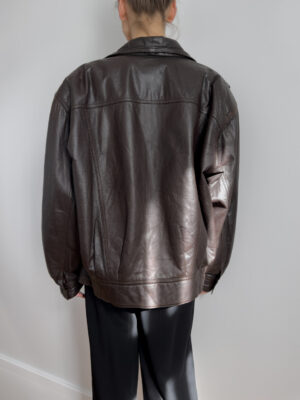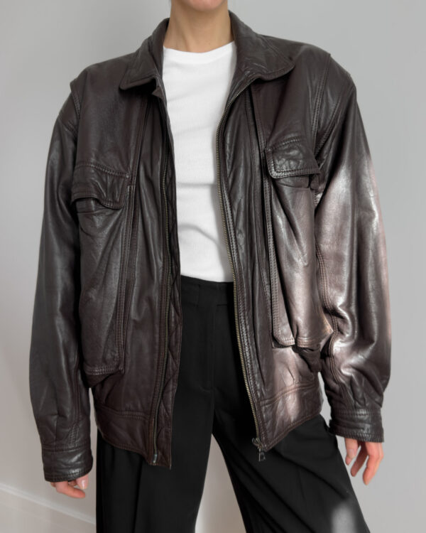 Oversized leather bomber | Chocolate brown