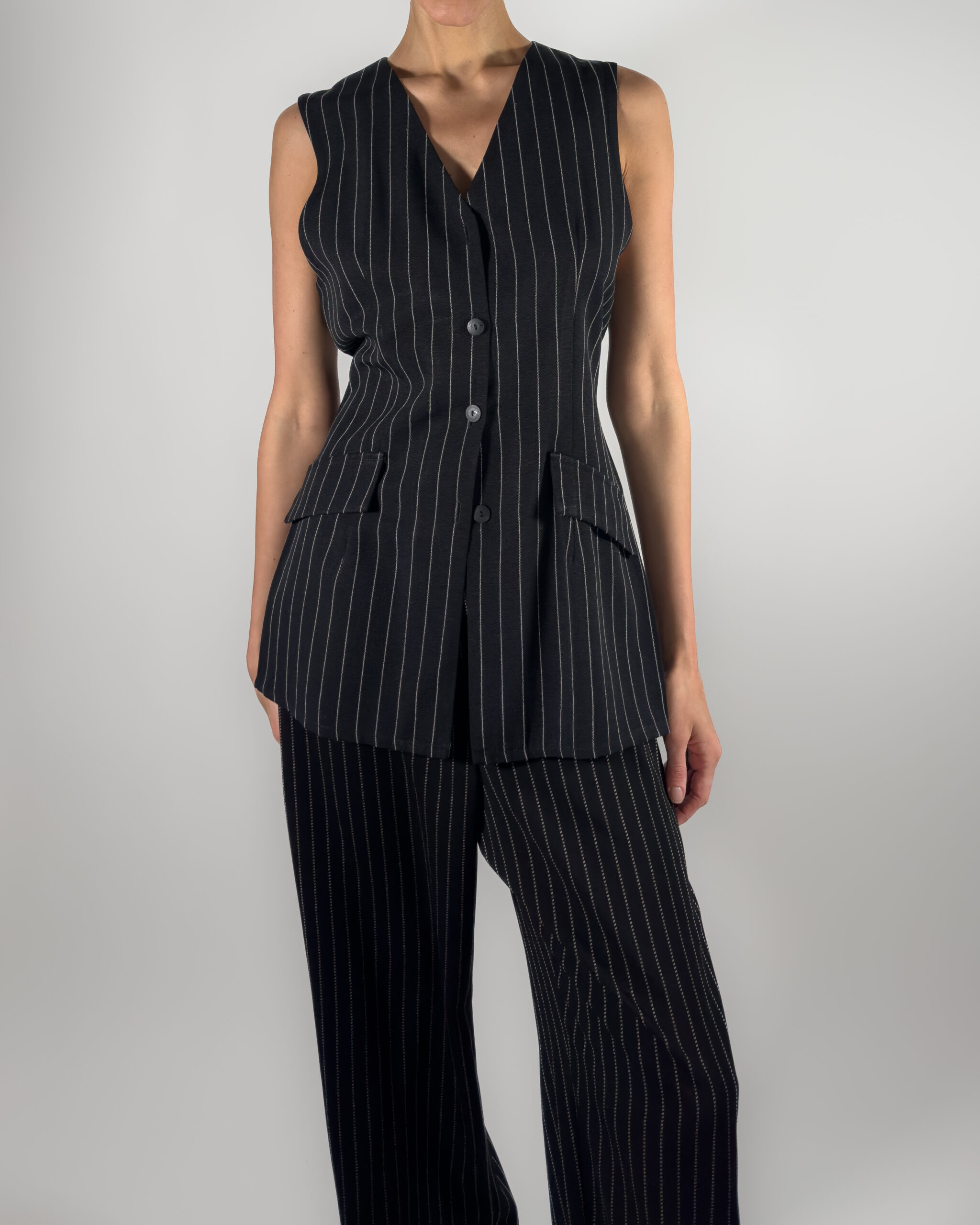 Timeless pinstriped vest. Pairs beautifully with the pinstriped blazer and trousers (available separately).