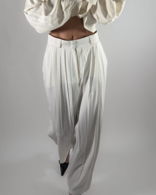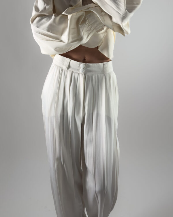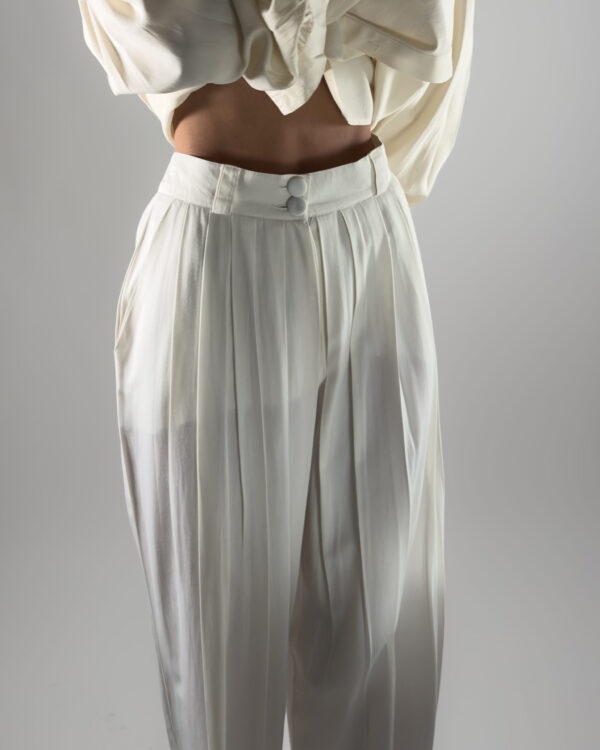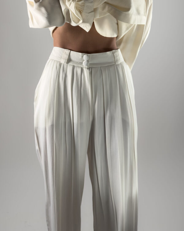 Pleated Viscose Trousers | Cream White