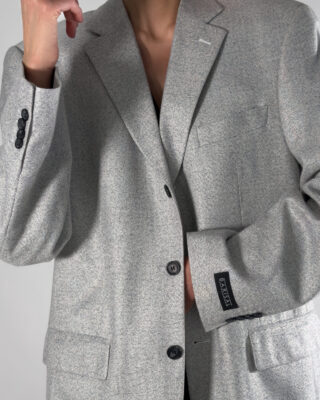 Unisex/mens wool blend blazer in a soft light grey hue. By Barisal, this blazer features a button-up closure and a classic back slit.