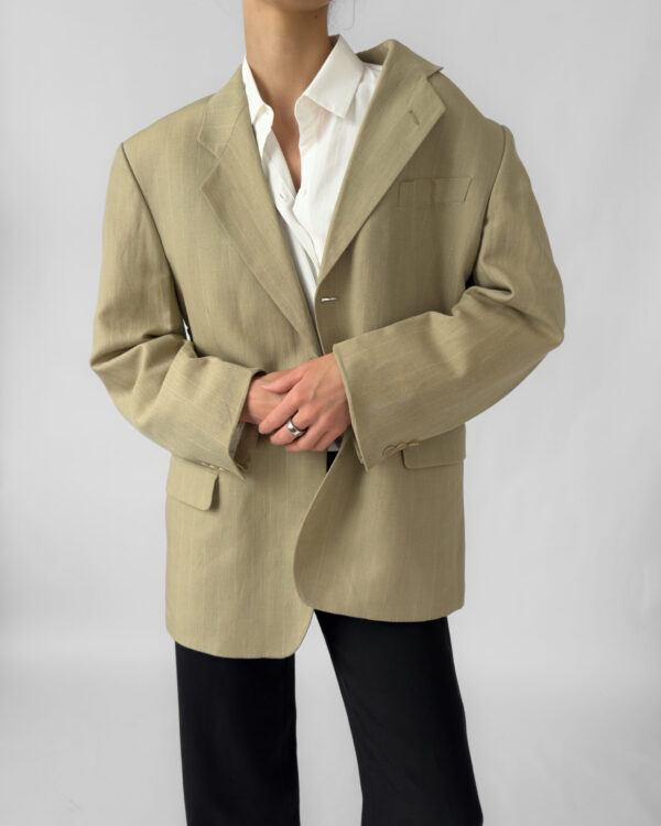 Yves Saint Laurent Pinstriped Wool Blend Blazer | Light Olive